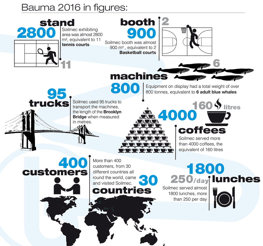 Soilmec customer and visitor response this year at Bauma in Munich has simply been outstanding. Our people were delighted with the quality and variety of the equipment on show and the exhibition project itself. Good business was the result.