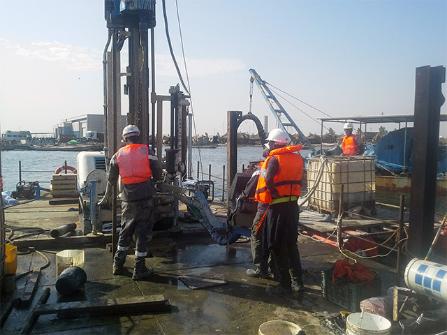 President Sall, a geological engineer member of multiple national and international associations of geologists, successfully tested himself a Soilmec SM-21 drilling rig, in use on the job site together with an SM-8G and an SM-5G for soil investigations and geognostic use.