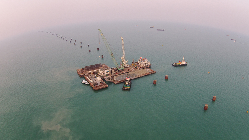 Building offshore foundations for the new Sheikh Jaber Al-Ahmad Al-Sabah Causeway in Kuwait City, Kuwait, is the latest in a long line of complex marine projects successfully constructed by the Trevi Group.