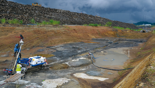 As part of the Third Set of Locks Panama Canal Expansion Project, the Borinquen Dam will allow navigational access through the Pacific Approach Channel to the new Pacific Locks. Trevi Panama also drilled and injected an injection curtain to guarantee a waterproof sealing of all rock cracks in the foundation of the dam. Specifically, they drilled 37,500 linear meters of soil and injected 2,200 tons of cement in two lines in the foundation of the dam, spaced 3 m from each other. They executed the injections using Soilmec micro-drilling rigs SM-8 and SM-5 and Soilmec injection plants GS1 and GI ET8.