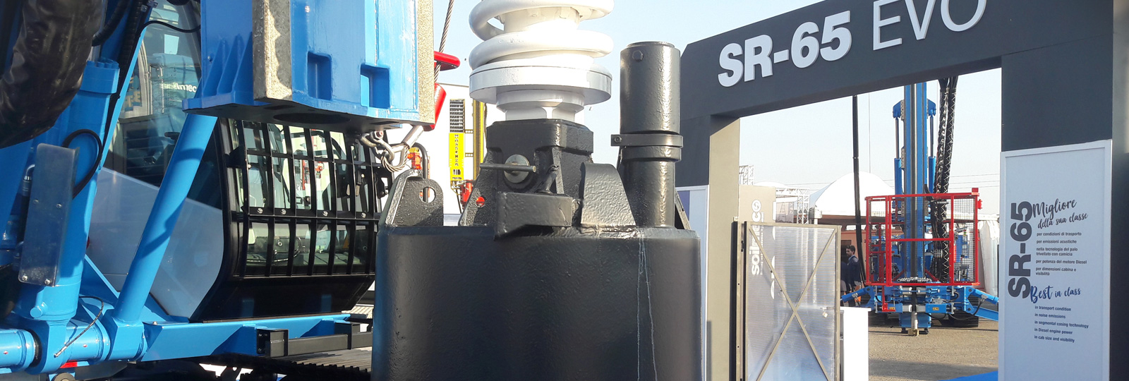 The real “star” of this Geofluid edition, what was undoubtedly the most successful rig among visitors, was the new SR-65 EVO, namely a hydraulic drilling rig for large diameter piles. The equipment is characterized by an innovative, compact, and powerful design that maintains the traditional trademark of agility and easy handling that contributed to making this Soilmec product segment the number one in the world.