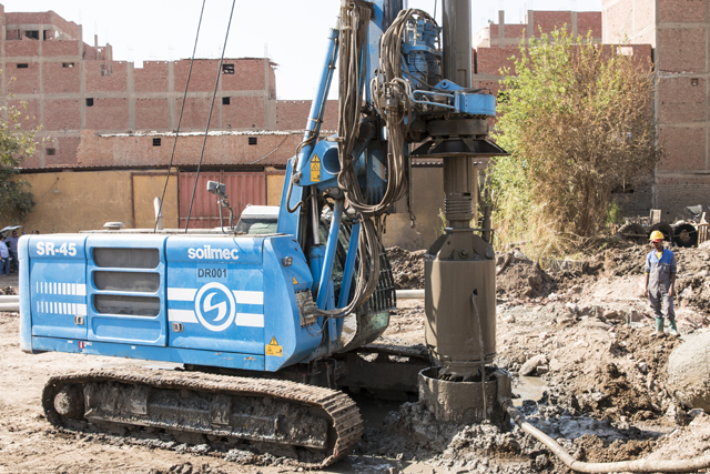 The piles are designed with a diameter of 1000 mm and a maximum depth of 31 m. The excavation is performed using bentonite mud and bucket tools. The project foresees the execution of more than 3000 piles. Many Soilmec rigs have been chosen for the Rod El Farag bridge and road construction project, thanks to their flexibility and fast operating capacity, especially the SR-45 and the SR-60, that are operating successfully throughout the area.”