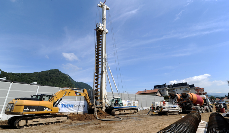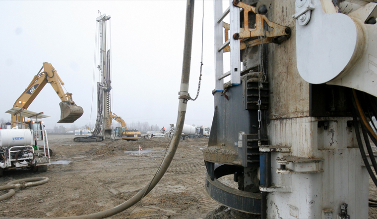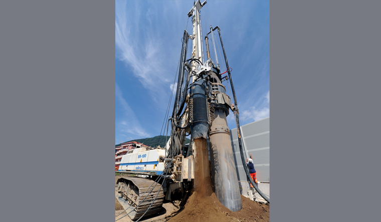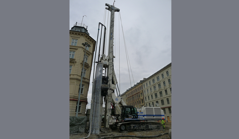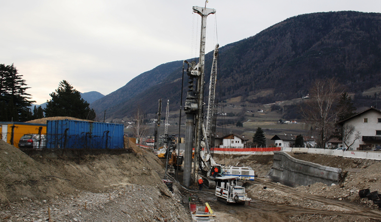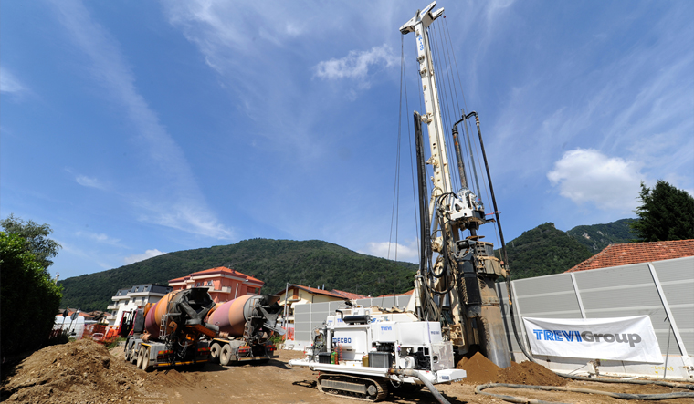 In the operating phases piles are dug with simultaneous driving of the casing and the augers into the soil. When casing is completely driven the pile’s digging may continue only with the blades. Once the digging phase is finished, the blades and lining are extracted; at the same time the concrete is poured through the internal passage in the core of the blades. Once pouring is done, the cage is inserted into the still wet concrete. The continuous diaphragm is constructed with secant primary and secondary piles, properly overlapped; with this application it is necessary to construct guiding walls to ensure correct planimetric positioning of the piles and to guide the lining pipe on the surface. The great performance of the rig is guaranteed thanks to the double independent rotary head that, assisted by crowd-force of the crowd-winch system, assures the best production rate.